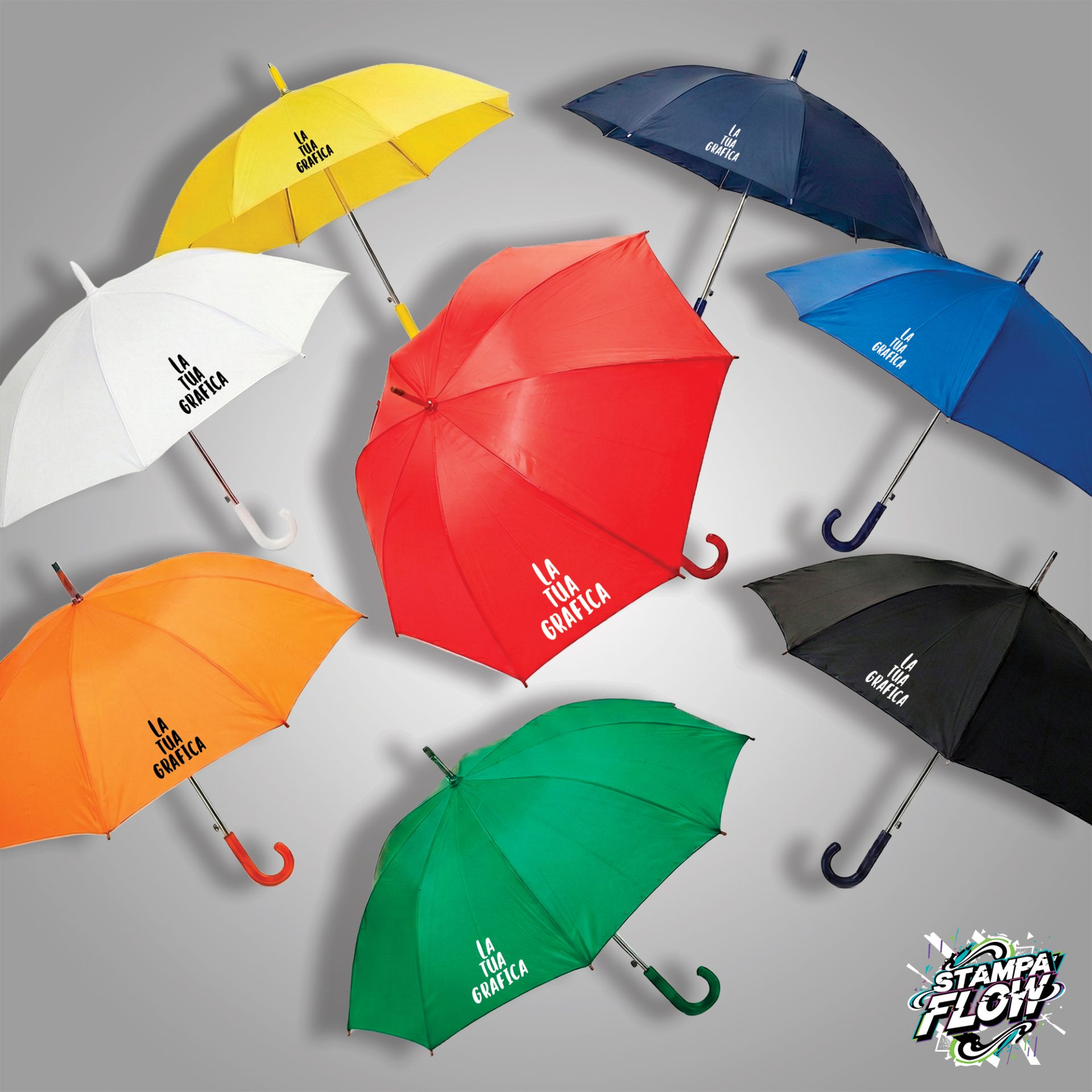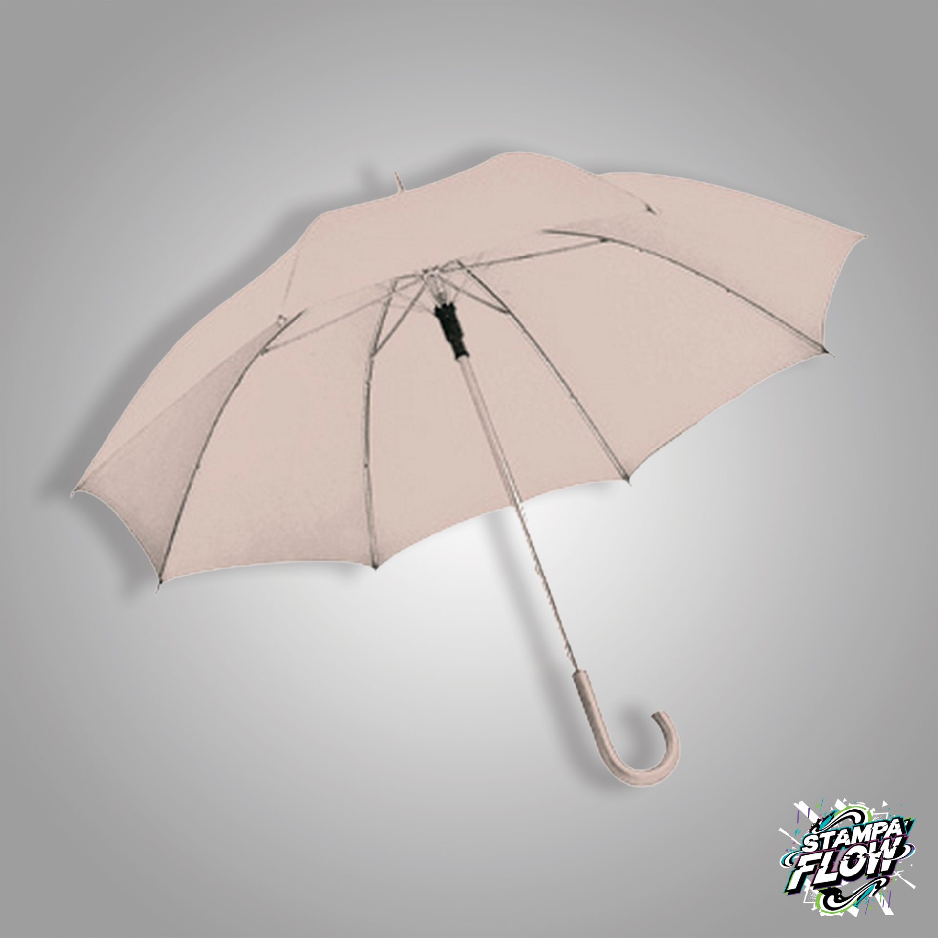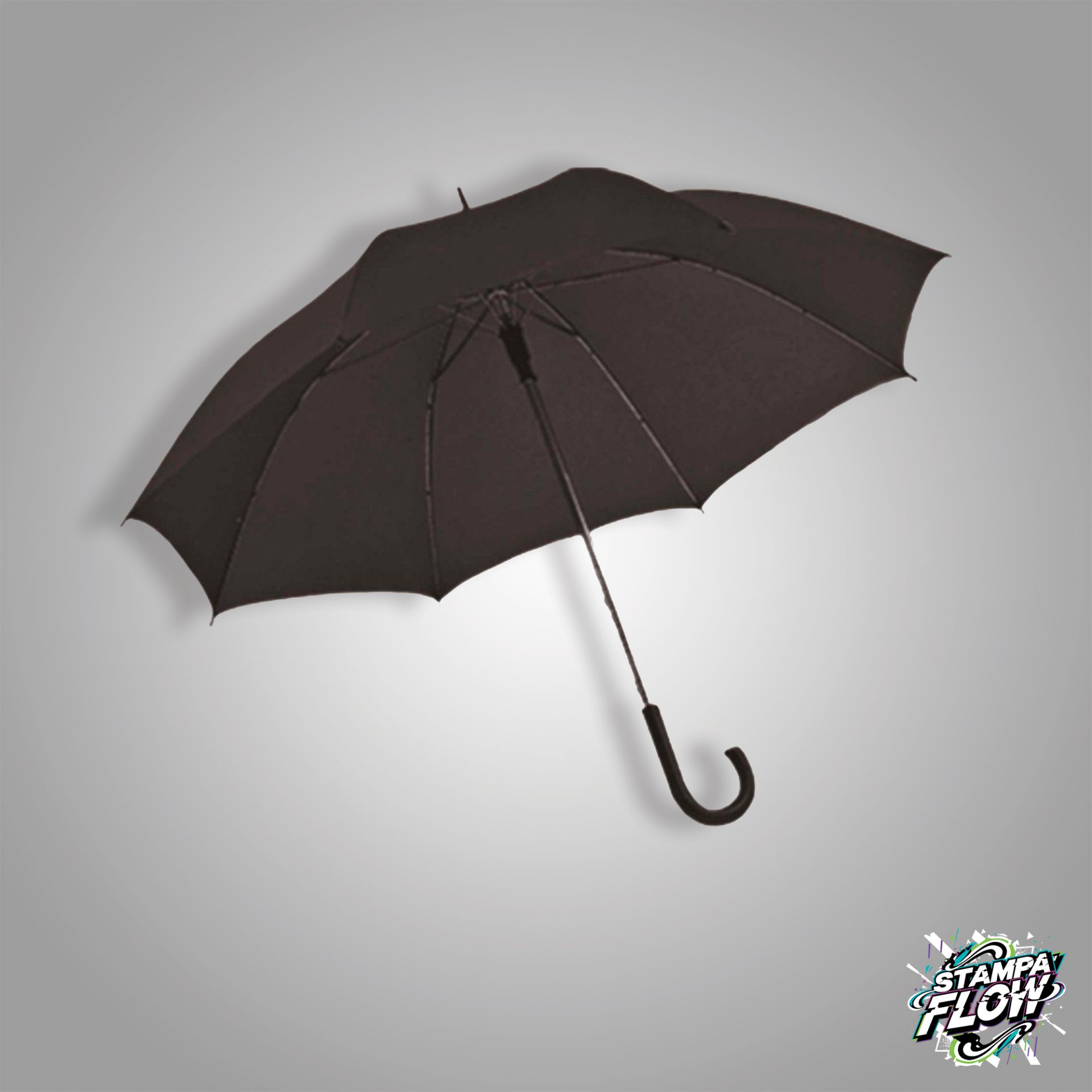 Ombrello scatto automatico. Poliestere 190T. Manico curvo e puntale in plastica. Dimensioni h cm 85 Ǿ cm 105