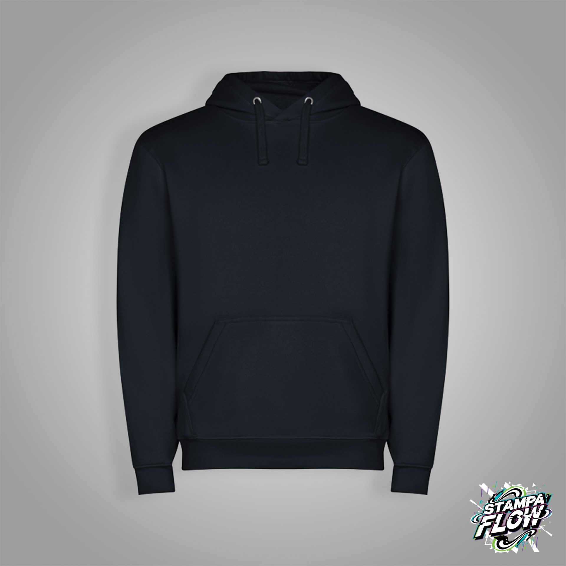 Felpa con cappuccio con tasca a canguro e cordoncino piatto regolabile. Polsini a costine 1×1 e girovita con elastan. Modello per bambini senza cordone.