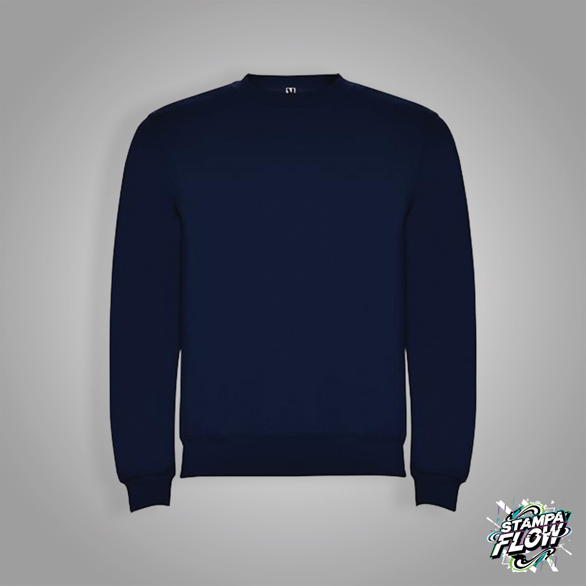 Felpa girocollo unisex. Colletto, polsini e vita a coste 2×1 con elastan. Cuciture nastrate in tessuto coordinato.