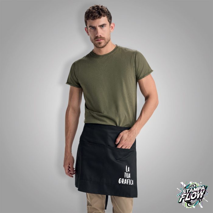 Praticità e stile per il mondo del food e del servizio. Questo grembiule corto in tessuto twill è progettato per resistere all’uso quotidiano in bar, ristoranti o laboratori artigianali. La capiente tasca frontale, rinforzata da una doppia cucitura centrale che la divide in due scomparti, permette di organizzare al meglio palmarini, penne e attrezzi da lavoro. Grazie ai lacci in tessuto coordinato regolabili in vita, assicura una vestibilità comoda per ogni corporatura, mantenendo un’immagine professionale e ordinata.