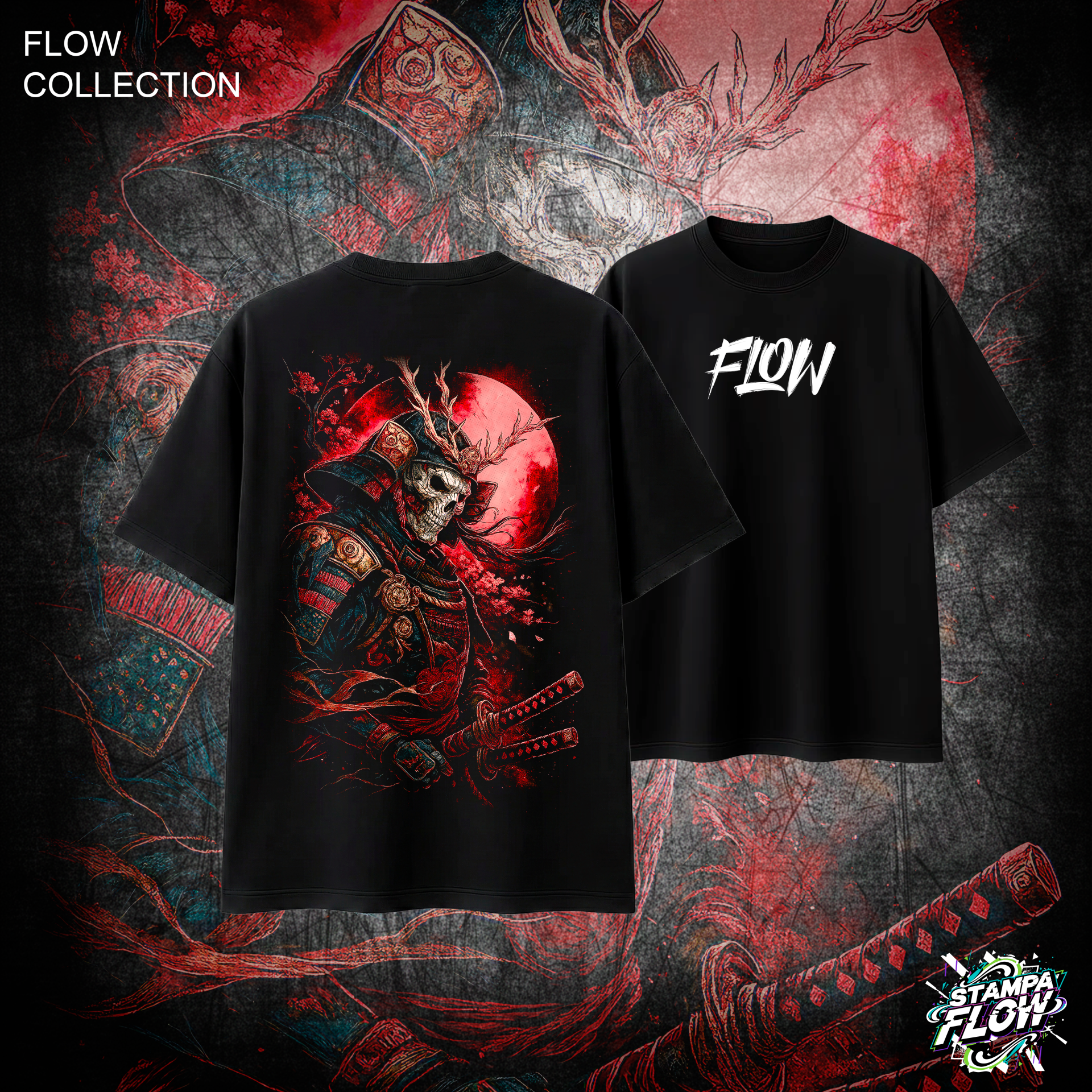 T-Shirt Oversize Blood Moon Samurai – Flow Collection