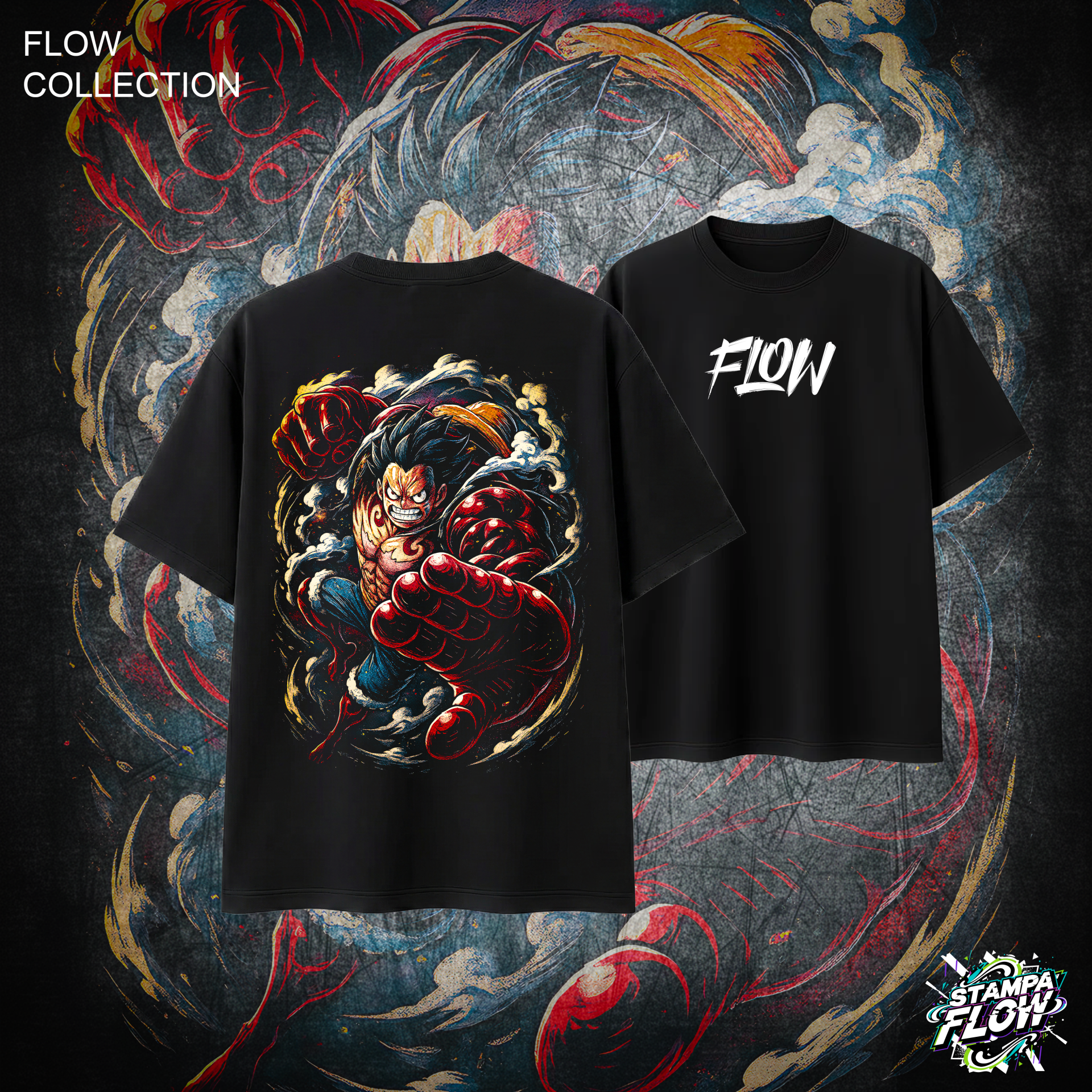 Questa T-shirt trasforma la potenza del “Gear” definitivo in un capolavoro di streetwear moderno. La maxi-grafica posteriore domina con un ritratto tridimensionale: il rosso intenso delle braccia corazzate spicca con un contrasto brutale sul nero del cotone pesante, mentre le pennellate bianche e oro aggiungono un tocco artistico unico. Realizzata con fit oversize e materiali premium Made in Italy, è la maglia definitiva per chi vuole portare l’energia del risveglio del guerriero direttamente nella giungla urbana. Sul petto, il logo FLOW completa il design.